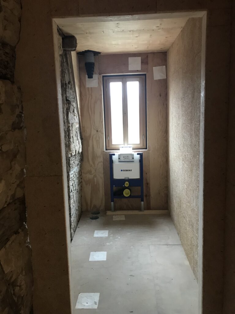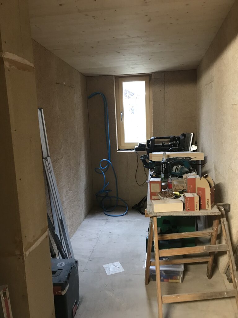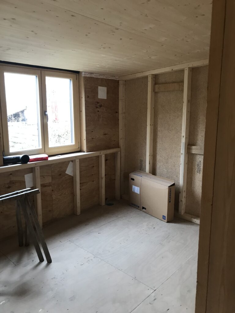 14.03.2025 – die Wände werden geschlossen. Nun sieht man wie groß die Zimmer werden und bekommt ein Gefühl für die Proportionen. Auch die Vorinstallation für die Toiletten ist vorbereitet.
