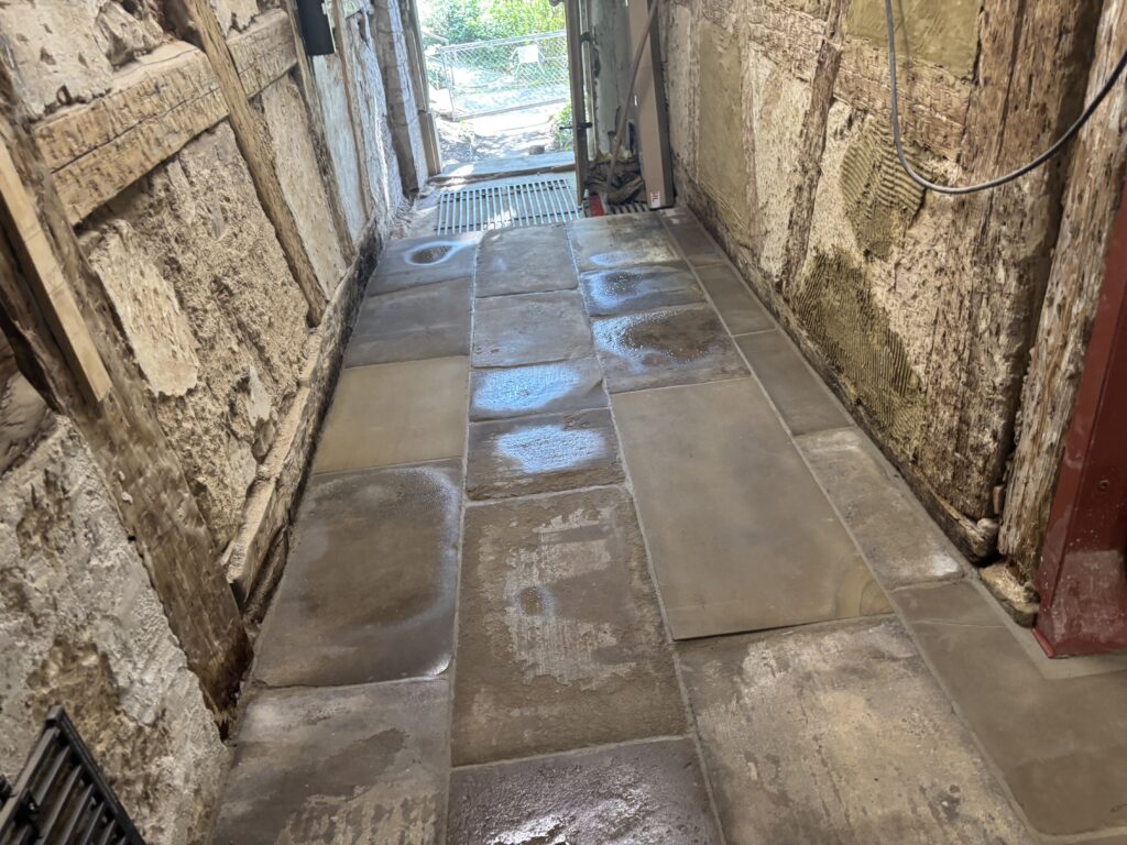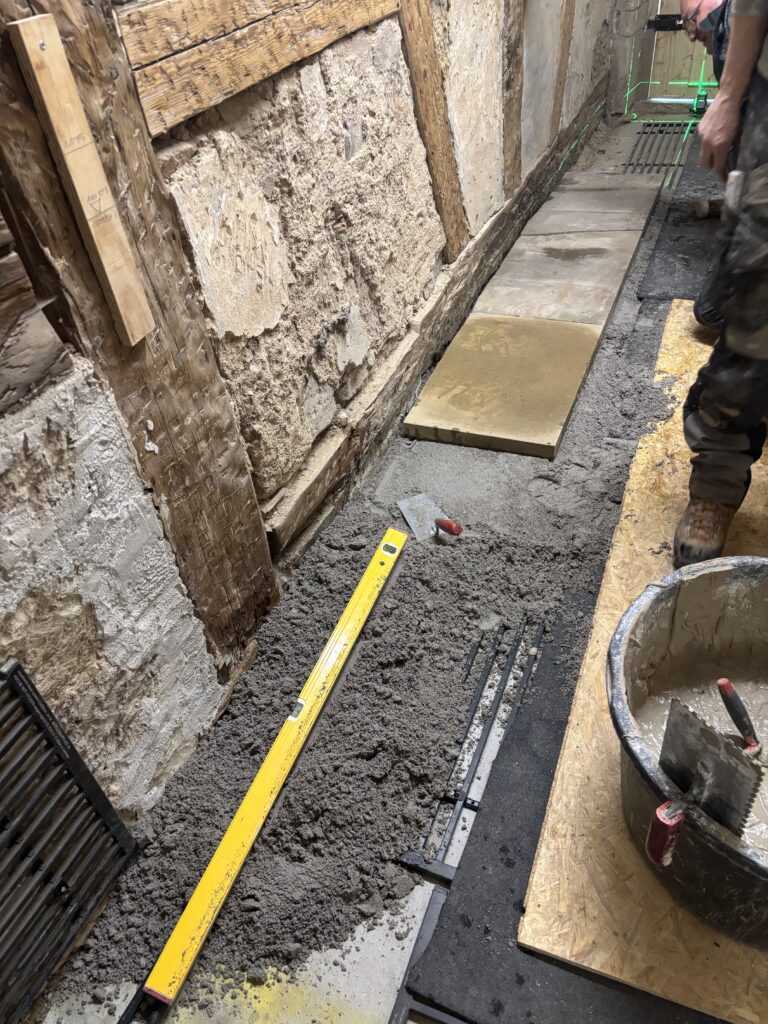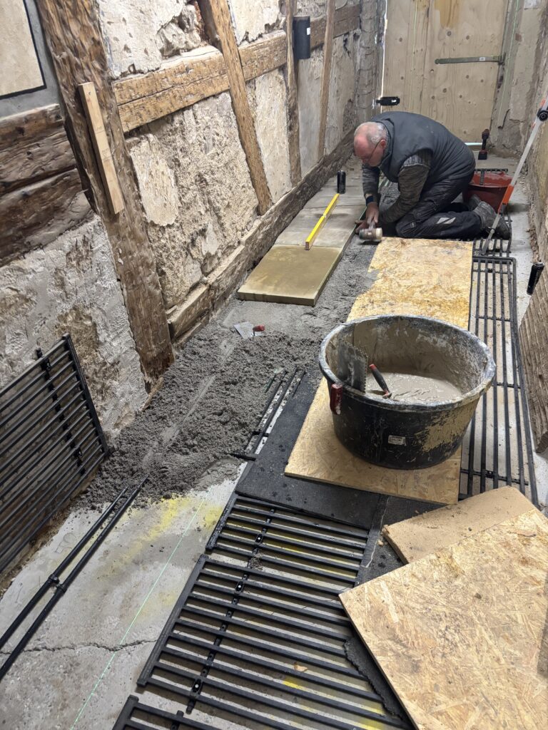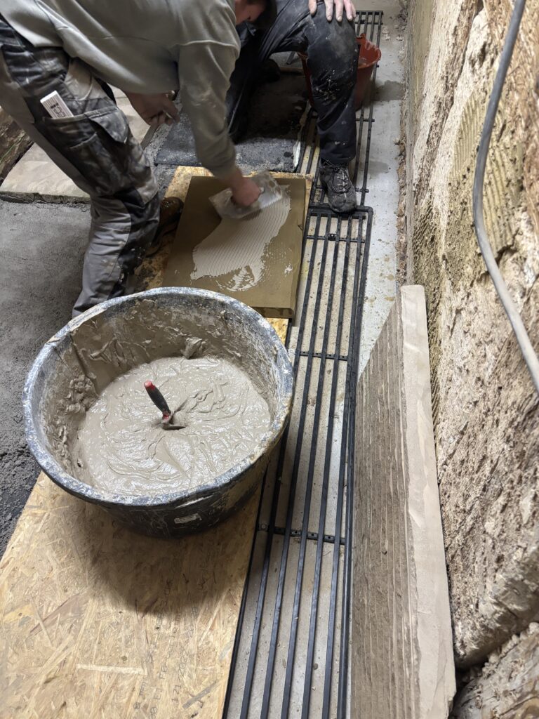07.04.2025: Die alten gekennzeichneten Sandsteine kommen zurück. Dazu ein paar „Neue“ um die kaputten Steine ersetzen zu können. Die Steine müssen teilweise auf der Unterseite nochmals nachbearbeitet werden.