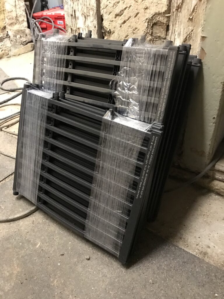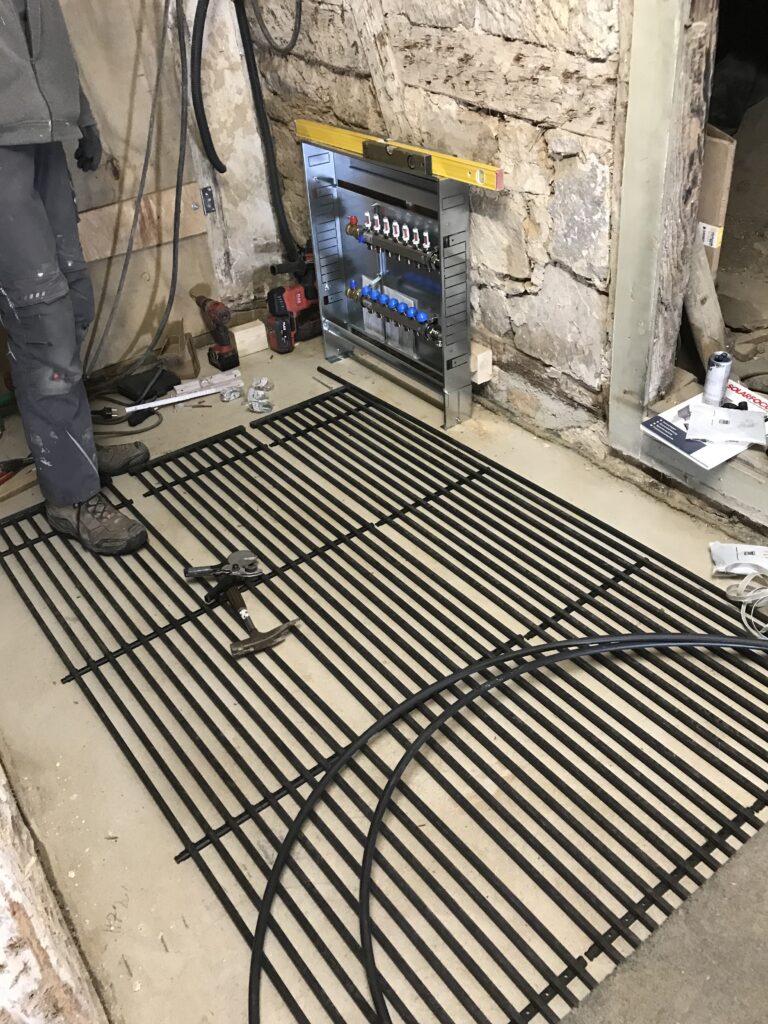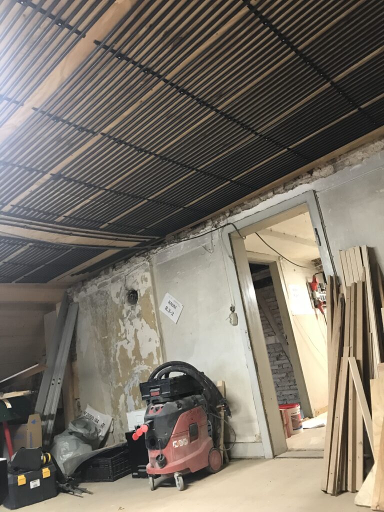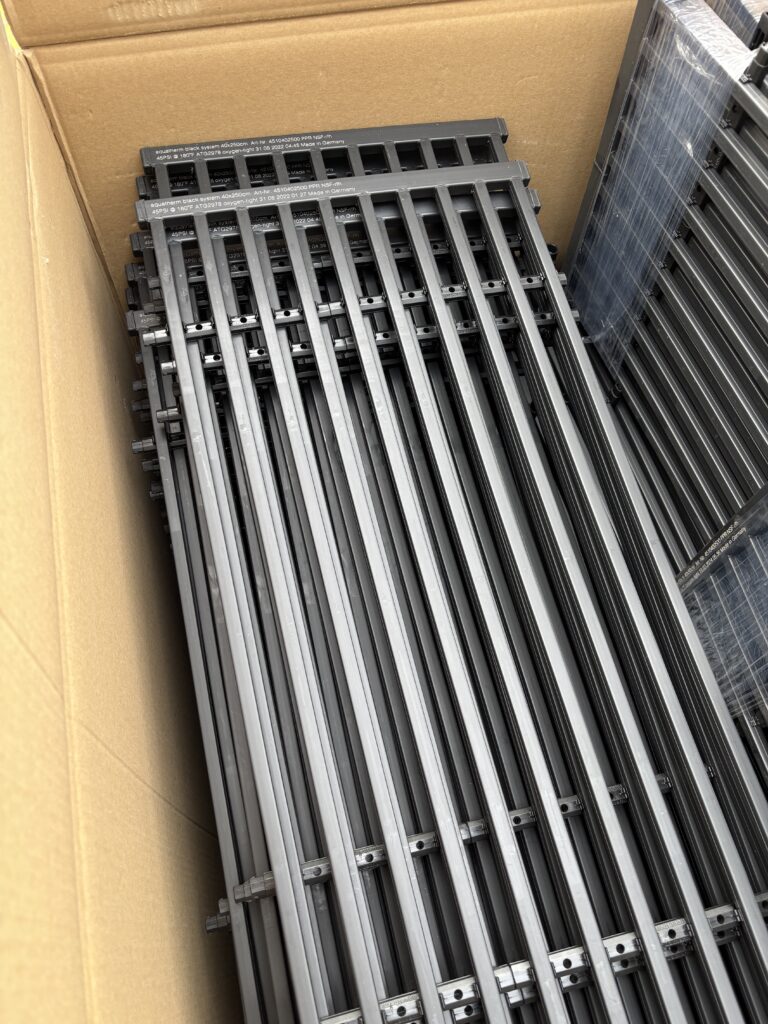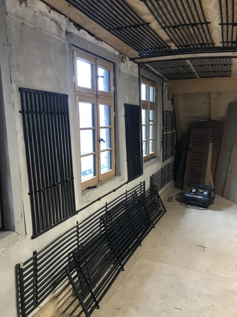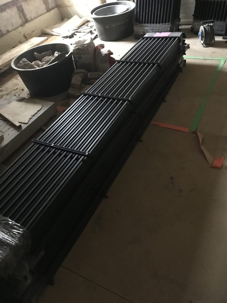 Anfang Februar wurden die ersten Heizregister geliefert. Eine nähere Beschreibung dazu habe ich in einem älteren Beitrag schon gemacht (black system von aquatherm). Diese kommen nun wie schon beschrieben an Wände, Decken oder auf den Boden – je nachdem wo wir angreifen oder nicht belegen können.