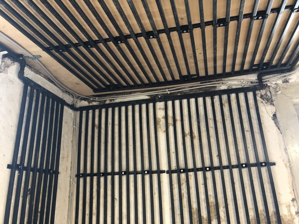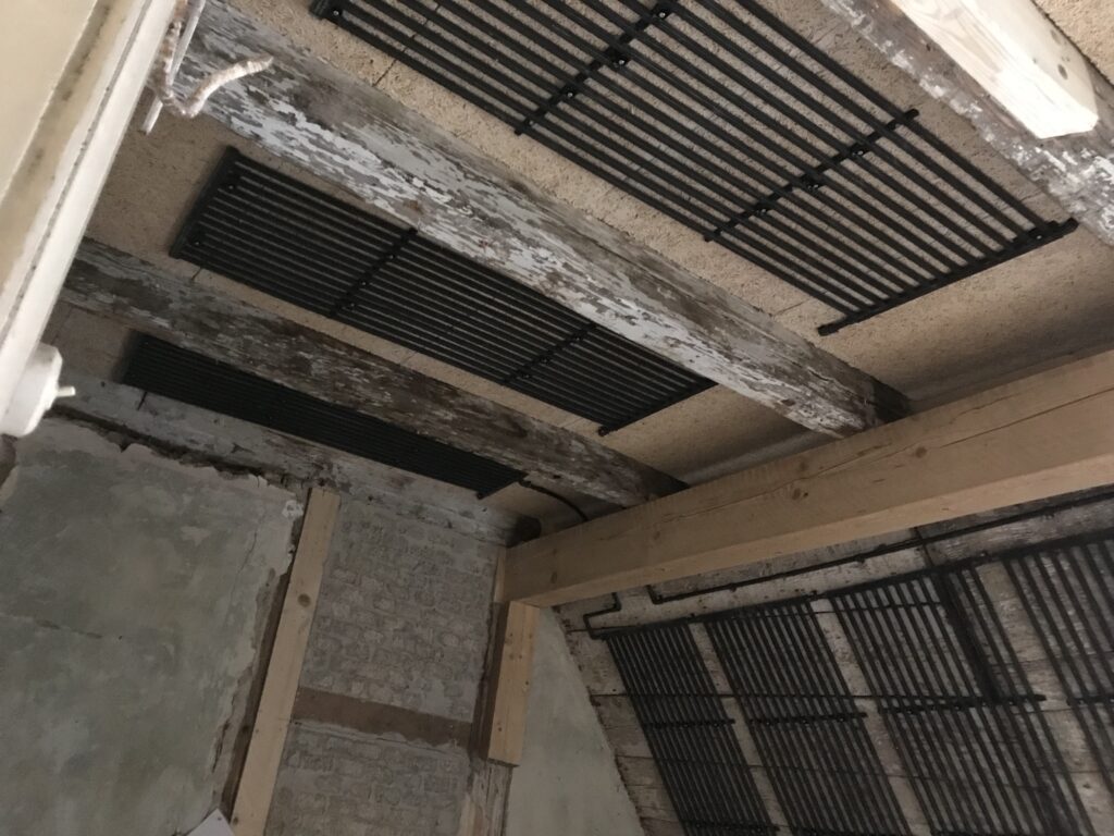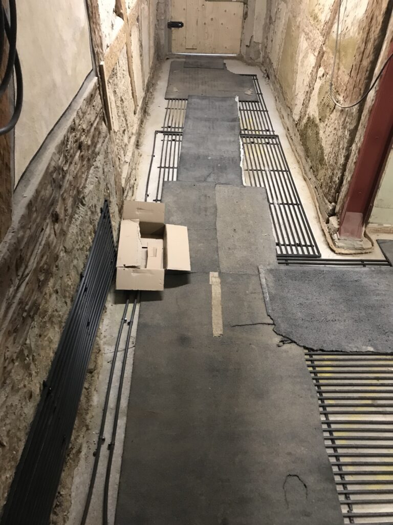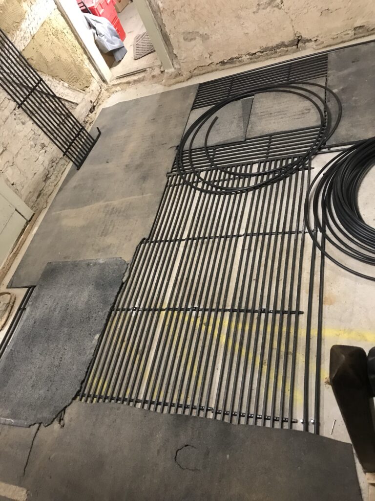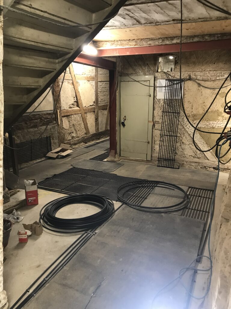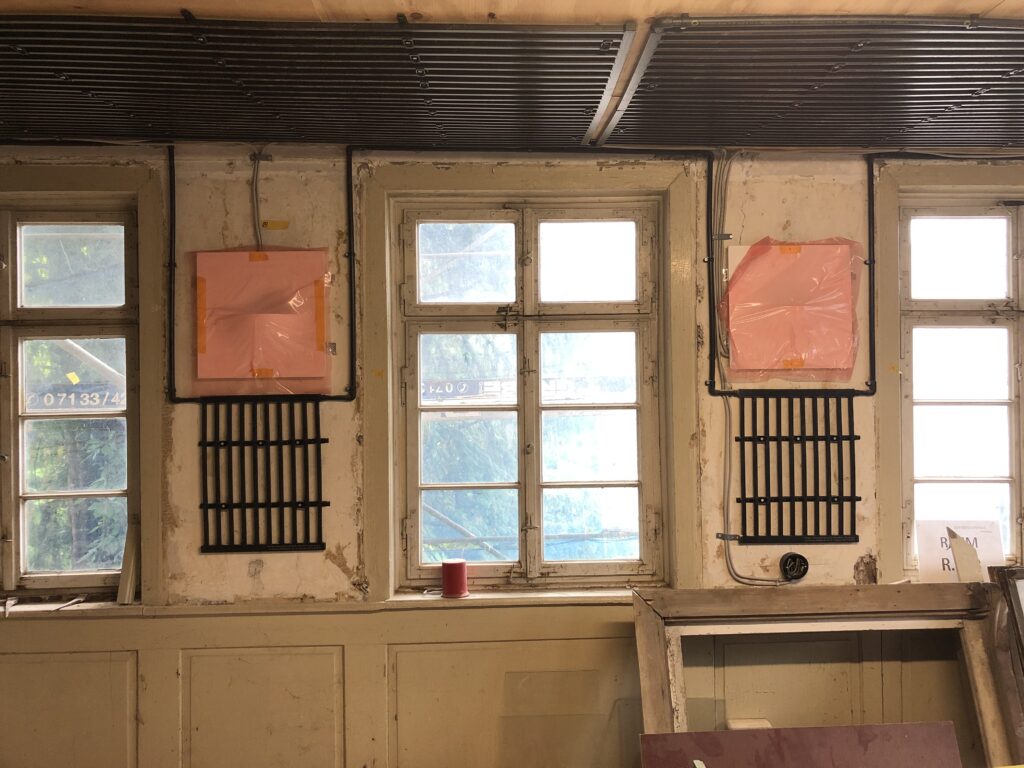 12.02.2025: weitere Register kommen dazu. Im Erdbeschoss wird mit den Fußbodenelementen angefangen, damit der alte Sandstein wieder verlegt werden kann.