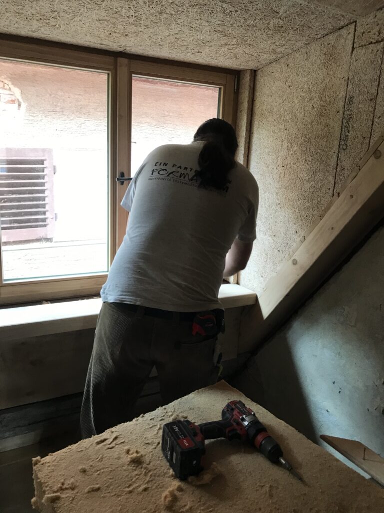 16.05.2025: Thilo hat begonnen, die Fensterbänke für innen zu fertigen.