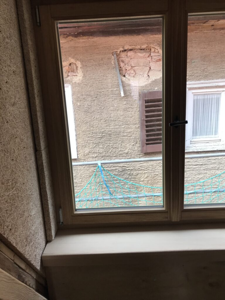 Schön werden sie, die Fensterbänke. Immer wieder müssen sie eingepasst werden, damit am Ende alles passt.